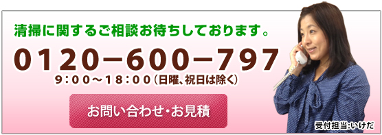 株式会社クリーンフィールド 本社 東京都江戸川区東葛西1-8-17 フィールドビル2 TEL 03-5696-5873 FAX 03-5696-5874 0120-600-797 営業時間 9:00~17:00